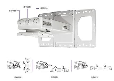 明基DW883UST教育投影機(jī)作為一款超短焦投影機(jī)配備原裝三軸超短焦調(diào)整吊架,滑入式安裝,配備先進(jìn)的安裝模板,安裝步驟清晰明了,按照安裝流程即可輕松組合完成,無(wú)需專業(yè)人員也能自己動(dòng)手創(chuàng)造高畫(huà)質(zhì)圖像。投影機(jī)和吊架的完美結(jié)合,解決了投影機(jī)安裝、調(diào)試難題。并能適應(yīng)各種墻面,凸凹不平的墻面也不怕!獨(dú)特的壁裝校準(zhǔn)系統(tǒng),壁掛架配備三軸調(diào)整功能,可隨意調(diào)節(jié)投影機(jī)位置,直觀調(diào)整圖像,確保完美畫(huà)質(zhì)。