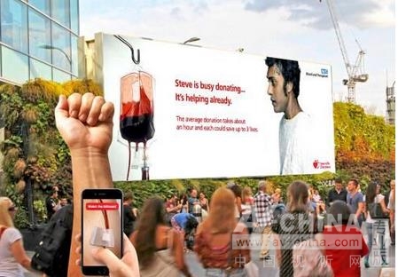 摘得冠軍的數(shù)字創(chuàng)意活動(dòng)是一個(gè)由23red推出的增強(qiáng)現(xiàn)實(shí)感的宣傳活動(dòng)(如上圖所示);顒(dòng)以虛擬獻(xiàn)血為主題,旨在解決英國(guó)獻(xiàn)血者數(shù)量不斷下降的問(wèn)題。