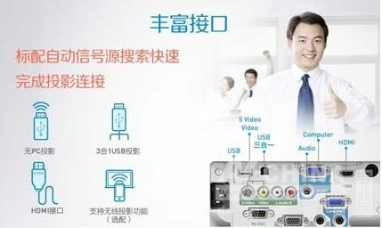 會議使用的投影機經(jīng)常需要連接不同的設備進行演示,所以對接口的兼容性有較高的要求。愛普生商務投影機新品擁有豐富的接口選擇,在提升效率的同時全面滿足各類設備的連接需求。并且用戶通過USB線纜連接投影機,即可進行聲音、圖像和控制信號的實時輸出投影。即使未攜帶電腦只需插入USB存儲卡,就可在無PC環(huán)境下進行圖片和視頻文件投影輸出,為用戶提供了靈活自由的連接方式選擇。