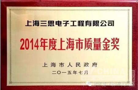 2015年10月13日,上海市市政府舉行了年度上海市質(zhì)量金獎(jiǎng)?lì)C獎(jiǎng)儀式,副市長(zhǎng)時(shí)光輝為上海三思在內(nèi)的10家獲獎(jiǎng)組織和個(gè)人頒獎(jiǎng)并講話,市質(zhì)監(jiān)局黨委書記、局長(zhǎng)黃小路出席活動(dòng)。