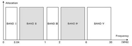 無線射頻傳輸?shù)闹饕獞?yīng)用頻段有VHF、UHF、5G等。VHF主要應(yīng)用于廣播電臺(tái)/電視、航空航海通信等領(lǐng)域,適合遠(yuǎn)距離通信,會(huì)議行業(yè)較少利用這一頻段;UHF的主要應(yīng)用則可以按頻率區(qū)分為400MHz ~ 900MHz 和2.4GHz,400MHz ~ 900MHz這一頻段多應(yīng)用于廣播電視、對(duì)講機(jī)等,而2.4G則為無線網(wǎng)絡(luò)所應(yīng)用;5GHz頻段同樣應(yīng)用在無線網(wǎng)絡(luò)這一層面較多。紅外線調(diào)制頻段的分布受限于紅外接收管的開關(guān)頻率,紅外調(diào)制頻率無法做到太高,一般為10MHz以內(nèi),應(yīng)用在會(huì)議系統(tǒng)中,目前常規(guī)采用2MHz~8MHz。
