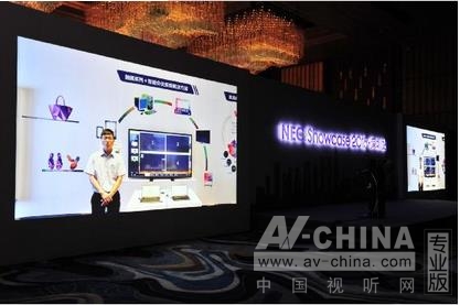 參會嘉賓在NEC 顯示器前參觀
