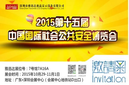 每到十月份,便是安防行業(yè)約起的季節(jié)。2015年第十五屆中國國際公共安全博覽會(簡稱安博會,英文縮寫CPSE)將于2015年10月29日-11月1日,在深圳會展中心隆重開幕。作為安防專業(yè)液晶顯示領(lǐng)域領(lǐng)先品牌,雅迅達(dá)15年風(fēng)雨兼程,在多年的安博會中彰顯出了品牌的魅力與實(shí)力。今年,雅迅達(dá)同樣不會失約,別樣15年,別樣品質(zhì)!2015年深圳安博會“以屏見高下”,雅迅達(dá)邀您現(xiàn)場品鑒!