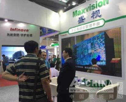現(xiàn)場大屏上正在演示威創(chuàng)公安可視化解決方案,引來參展嘉賓咨詢