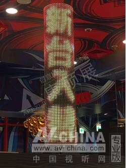 LED顯示屏,這些led圓柱屏采用P10點間距,直徑為200mm,高度960mm,吊裝在賭場天花板上,與賭場燈光音響相互結(jié)合,給人帶來強(qiáng)烈的視覺沖擊和美的享受。