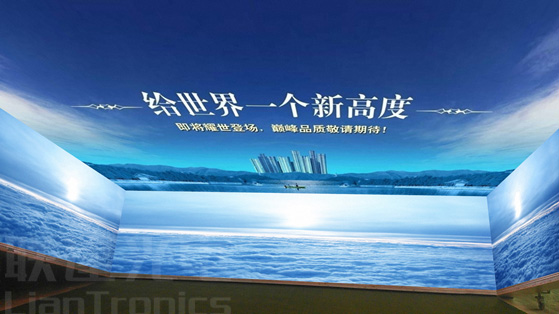 近日,聯(lián)建光電在華中地區(qū)再添經(jīng)典之作,用高端小間距LED顯示屏為武漢越秀地產(chǎn)打造了一個別具一格的客戶體驗區(qū)。據(jù)了解,該項目采用聯(lián)建光電V2.5小間距LED顯示屏,面積達115㎡,安裝于越秀地產(chǎn)售樓中心內(nèi)一個形似倒扣方盒的客戶體驗區(qū),LED顯示屏鑲嵌于體驗區(qū)內(nèi)四面墻壁,造型獨特,視覺效果無與倫比,此項目成為國內(nèi)地產(chǎn)界LED屏應(yīng)用的新標桿。