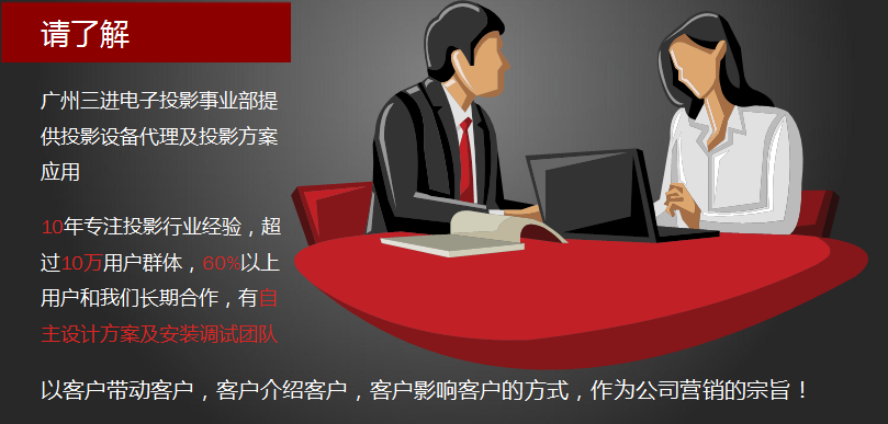 投影機(jī)有幾項(xiàng)目重要的指標(biāo)參數(shù),像分辨率、亮度、對(duì)比度、燈泡壽命等,是廠商及用戶關(guān)注的技術(shù)含量。廣州三進(jìn)電子有專業(yè)的演示體驗(yàn)中心,作為一家投影設(shè)備供應(yīng)商,公司擁有售前體驗(yàn)、售中咨詢、售后服務(wù)三項(xiàng)基本,并提供整套的多媒體設(shè)備、會(huì)議影音設(shè)備等解決方案。包括投影機(jī)、電子白板、投影銀幕、展示臺(tái)、音響設(shè)備、講臺(tái)等,可一站式完成,讓用戶能更簡(jiǎn)單、方便、放心的體驗(yàn)及購(gòu)買。