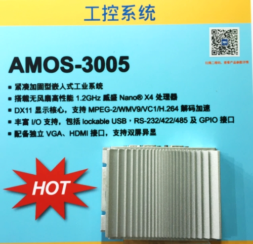 AMOS-3005是一臺無風(fēng)扇高性能1.2GHz四核處理器的x86嵌入式系統(tǒng),因其高性能低功耗,且連接、擴展性極強,成為本次威盛展位最受歡迎的工控系統(tǒng)。