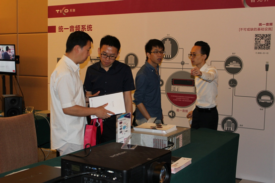 在活動現(xiàn)場,天創(chuàng)搭建了許多實用且專業(yè)的應(yīng)用解決方案并和大家做了技術(shù)分享,包括智宇系統(tǒng)——大型廳堂網(wǎng)絡(luò)智能化音視頻系統(tǒng),智音系統(tǒng)——統(tǒng)一通信音頻應(yīng)用解決方案,智拓系統(tǒng)——高品質(zhì)會議系統(tǒng)應(yīng)用解決方案,及統(tǒng)一音頻解決方案——全網(wǎng)絡(luò)資源的充分調(diào)用。此外,活動上還介紹了許多創(chuàng)新的技術(shù)和產(chǎn)品,如可調(diào)音頻指向性技術(shù)、會議系統(tǒng)(話筒)的選擇和應(yīng)用等,最新的藍(lán)光盤存儲系統(tǒng)。天創(chuàng)旗下代理的全線音頻產(chǎn)品,SONY高清會議攝像機及日立DLP投影機等也在現(xiàn)場做了展示。