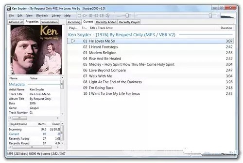 (1)Foobar2000可以說(shuō)是Windows系統(tǒng)中的音樂(lè)播放神器,不僅支持所有的音頻文件格式,同時(shí)通過(guò)它的不同DSP組件還能與專(zhuān)業(yè)的VST插件進(jìn)行橋接、重采樣、多聲道輸出等等,另外它還具有完全的界面UI自定義功能,當(dāng)然它的音質(zhì)也是媲美于專(zhuān)業(yè)的音頻工作站,最后它所擅長(zhǎng)的就是播放列表管理功能了,這個(gè)功能特別適合于現(xiàn)場(chǎng)節(jié)目較多的情況。