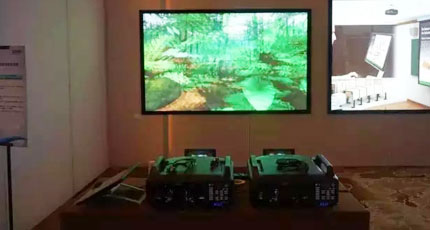 背投使用的兩臺(tái)CB-Z10000U,通過其內(nèi)置的多畫面拼接系統(tǒng),可將兩個(gè)不同的畫面融合為一個(gè)完整的畫面,不僅畫面尺寸統(tǒng)一整齊,而且色彩艷麗。用戶可以非常容易的通過CB-Z10000U內(nèi)置多畫面拼接系統(tǒng),校正多畫面拼接投影。無需其他設(shè)備,即可自己動(dòng)手輕松調(diào)節(jié)點(diǎn)校正、邊緣融合、多屏幕色彩校正和黑場校正等功能,非常的方便實(shí)用,大幅節(jié)省使用成本。