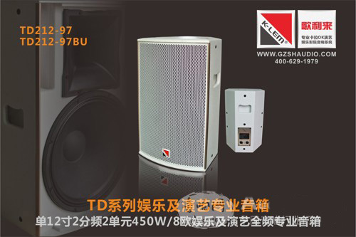 VIP包房配置了TD212-97作為主音箱。TD 系列娛樂及演藝專業(yè)音箱是臺(tái)灣K-LEM(歌利來(lái))品牌針對(duì)房間卡拉OK、大廳酒吧、會(huì)所俱樂部、高質(zhì)量語(yǔ)言擴(kuò)聲系統(tǒng)、中小型演藝領(lǐng)域而開發(fā)生產(chǎn)的一款高標(biāo)準(zhǔn)、高配置的專業(yè)音箱。TD 系列箱體外觀以白色為主色調(diào),黑色可供選,積極配合當(dāng)下流行的簡(jiǎn)歐、會(huì)所等商務(wù)裝修要求,為緊湊型箱體外觀設(shè)計(jì)。同時(shí),在箱體的外觀周邊加裝金色鋁條作為鐵網(wǎng)的壓邊,配合白色或黑色的鐵網(wǎng),高檔大氣,又彰顯細(xì)節(jié)表現(xiàn)。箱體采用13層厚雜木膠合夾板外殼,配合完善的吊掛裝置。TD系列提供了CMD技術(shù)(覆蓋匹配設(shè)計(jì)),這有助于保證高頻號(hào)角的極性響應(yīng)和低頻換能器的指向性之間的平穩(wěn)過(guò)渡。壓縮驅(qū)動(dòng)器在緊湊型系列的設(shè)計(jì)采用了最新的在電路技術(shù),配備了高功率處理低阻抗交叉設(shè)計(jì)、電子驅(qū)動(dòng)器保護(hù)。 TD212-97 是一款寬頻響、寬指向角度的全頻多用途兩分頻揚(yáng)聲器,音箱尺寸緊湊,是半隱蔽掛墻式或隱蔽式安裝的理想選擇。經(jīng)過(guò)CMD覆蓋匹配設(shè)計(jì)的高頻號(hào)角與低頻單元的覆蓋特性實(shí)現(xiàn)了平順的過(guò)渡與號(hào)角連接的。高頻驅(qū)動(dòng)單元是一個(gè)頻響平滑寬廣的1.75寸(120磁44芯)振膜的K-LEM 鋁扁線復(fù)合膜凹邊號(hào)角負(fù)載;低頻揚(yáng)聲器為 12寸紙盆( 190磁75芯)的進(jìn)口(馬來(lái)西亞U-Sonic)紙盤鑄鋁架單元。
