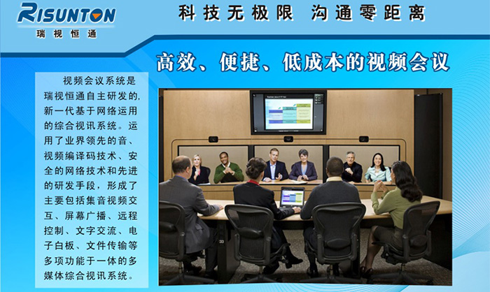 瑞視恒通視頻會議系統(tǒng)在醫(yī)療行業(yè)有著成熟的解決方案,根據(jù)中醫(yī)院的具體情況,結合瑞視恒通視頻會議功能,以及強大的兼容性特點,授權對應客戶端數(shù)。整套方案建設僅需相應帶寬和全向麥,聯(lián)網(wǎng)的客戶端只需要具備最普通的ADSL網(wǎng)絡,使用人員只要會操作電腦。瑞視恒通視頻會議主要完成三個信息模塊的交互:音頻、視頻和數(shù)據(jù)協(xié)作信息,并提供電子白板、共享文檔、協(xié)同瀏覽、會議記錄、文件傳送等數(shù)據(jù)協(xié)作功能。不僅解決遠程診斷、專家會診、信息服務、在線檢查和遠程交流,還實現(xiàn)對醫(yī)學資料和遠程視、音頻信息的傳輸、顯示及共享