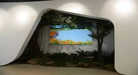 生態(tài)環(huán)境展區(qū)裝修構(gòu)造獨(dú)特,配以樹木、砂石模擬自然環(huán)境以展現(xiàn)有天然氧吧之稱的南寧風(fēng)光。鑒于展區(qū)前方有裝飾物的特性,由1臺愛普生7000流明雙燈投影機(jī)以背投方式完成投影,搭配短焦鏡頭,投影機(jī)鏡頭距離幕布3.68米,配合雙燈投影機(jī)的WXGA(1280*800)分辨率和5000:1的高對比度,色彩斑斕的投影畫面完美展現(xiàn)了綠城南寧的勃然生機(jī)。