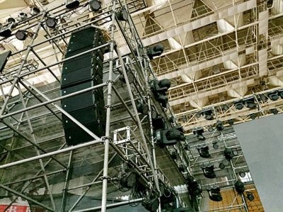 本場晚會選用了ZSOUND音響設備作為擴聲系統(tǒng),24只VCM雙十寸線陣列音箱作為主擴,配套12只VCS雙十五寸線陣超低音箱、M44T數(shù)字處理器、MA開關電源功放等設備。