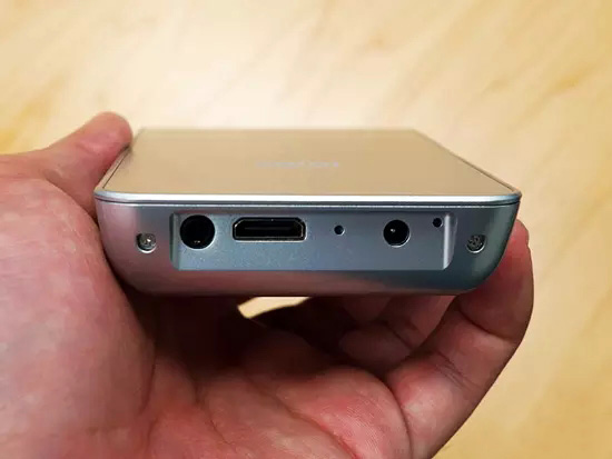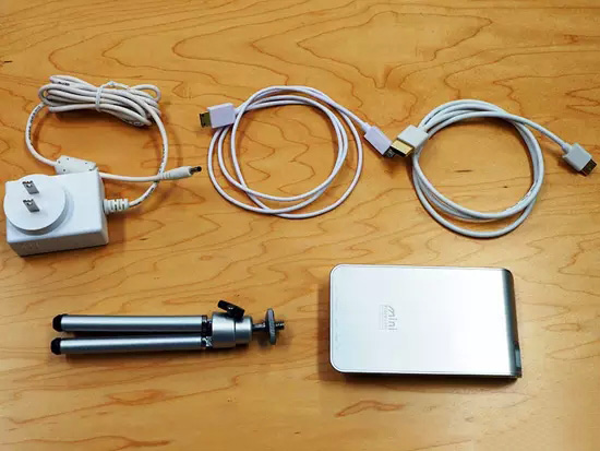 從本次全方位角度來看,佳能口袋型投影機C-5不僅小巧,而且做工也非常精致,從材質(zhì)來看,應(yīng)該是全金屬。同時,隨機配備的附件也非常豐富,包括電源線、MHL線、HDMI線和三腳支架。
