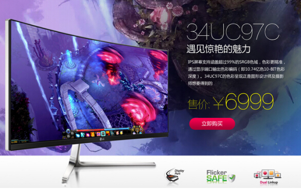 圖:LG 21:9曲面超寬屏顯示器34UC97C 京東首發(fā)售價(jià)6999元
