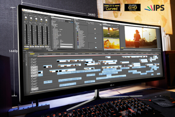 相較16:9的全高清顯示器,34英寸的21:9超寬屏顯示更多33%的面積,為工作帶來更多便利,尤其是音視頻編輯工作,可顯示多于44條的有效視頻片段,比普通全超清顯示器多顯示8條視頻片段,更多的顯示內(nèi)容為用戶省去放大或縮小窗口的操作,高效地編輯各種視頻工作。圖片工作亦是如此,可直接替代兩臺(tái)顯示器,將縮略圖和Photoshop CC同時(shí)顯示在一臺(tái)顯示器上,操作起來更快速、便捷。對(duì)于游戲玩家,更寬廣的視野有助于看到更多細(xì)節(jié),搶占更多游戲先機(jī),暢享屢戰(zhàn)屢勝的游戲體驗(yàn)。