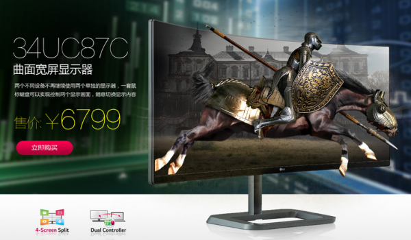 圖:LG 21:9曲面超寬屏顯示器34UC87C 京東首發(fā)售價6799元