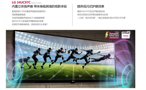 圖:LG 21:9曲面超寬屏顯示器支持低閃式護眼功能 緩解視力疲勞