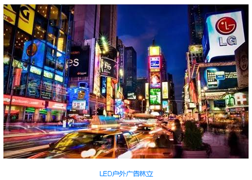 眾所周知,戶外廣告的載體從海報、燈箱是廣告、傳統(tǒng)的路牌、霓虹燈等進化到戶外LED顯示屏,為戶外廣告提供了更為豐富的表現(xiàn)形式,增強了宣傳效果,進一步 強化了戶外廣告對城市形象建設(shè)的支持作用。尤其是在北京、上海、廣州、深圳等一線城市,LED顯示屏逐漸占據(jù)了戶外廣告的大部分市場份額。