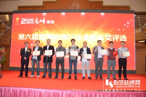 深圳打令智能科技有限公司 主題:打令品牌及產(chǎn)品介紹 在隨后的數(shù)字標牌行業(yè)高峰論壇中,來自數(shù)字標牌行業(yè)的6位精英代表(從左至右):迅豹聚能科技王培勇、艾爾鵬國際貿(mào)易上海有限公司廖華麟、保千里科技視像集團股份有限公司陳楊輝、中銀科技柯金成、南京中電熊貓聶文強、康佳壹世界商業(yè)顯示有限公司衛(wèi)智敏就數(shù)字標牌整個商業(yè)零售業(yè)變革以及智慧城市等趨勢下,數(shù)字標牌行業(yè)未來發(fā)展方向展開激烈的思想交鋒與碰撞! 在萬眾期待的數(shù)字標牌行業(yè)年度最高榮譽金孔雀獎頒獎典禮中, 30多家數(shù)字標牌行業(yè)杰出企業(yè)加冕行業(yè)最高榮譽“金孔雀獎”。