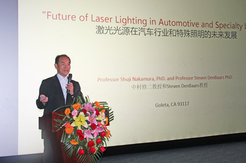 光峰獨創(chuàng)的ALPD®激光熒光顯示技術(shù)是目前最先進的,基于GaN藍光激光激發(fā)運動的熒光材料而產(chǎn)生一種或多種基色用于圖像顯示的技術(shù),它有效的利用了藍光激光高效率、長壽命的優(yōu)勢,在提高光效轉(zhuǎn)換效率的同時大大降低了成本,是一種顛覆性的新品類光源,是照明技術(shù)史上的一次重大突破。而這一發(fā)明,與中村教授在固態(tài)光源領(lǐng)域的研究息息相關(guān)。