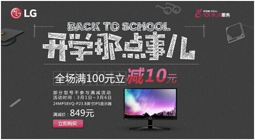 猴年新春新氣象,京東電腦節(jié)即將火爆開幕,本次活動LG旗下全線產(chǎn)品都將參與其中和大家一起喜迎開學季!優(yōu)惠幅度真是“猴賽雷”!3月1日至3月6日登錄LG“開學那點事”活動頁面選購,全場滿一百減十元,“晶”彩不容錯過!活動詳情請戳:http://sale.jd.com/act/HM6gdyAeEBuCJ.html