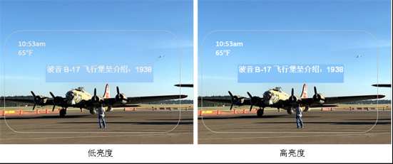 2.明亮的AR顯示(右)是用戶體驗的關鍵決定因素。如果亮度受限(左),