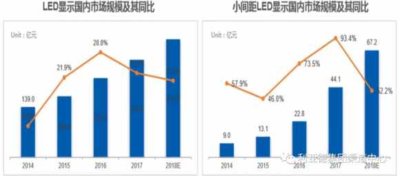 2018年LED整體市場預(yù)估325億,LED小間距整體市場預(yù)估67億,其中利亞德小間距在市場中的占有率為50%以上。