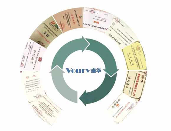 近年來, Voury卓華通過了ISO9001質量管理體系認證、ISO14001環(huán)境管理體系認證及職業(yè)健康安全管理體系認證,產品先后取得3C、CE、CB、ROHS及FCC等數十項國內、國際認證,并通過了一級能效、節(jié)能環(huán)保、防塵防水、抗震等各項檢測,陸續(xù)申報專利近百項,此外Voury卓華不斷突破技術瓶頸,創(chuàng)新設計理念,先后榮獲省長杯工業(yè)設計大獎、大屏拼接品牌大獎、小間距LED品牌大獎、LED顯示屏優(yōu)秀品牌獎、LED小間距十大品牌等眾多榮譽。