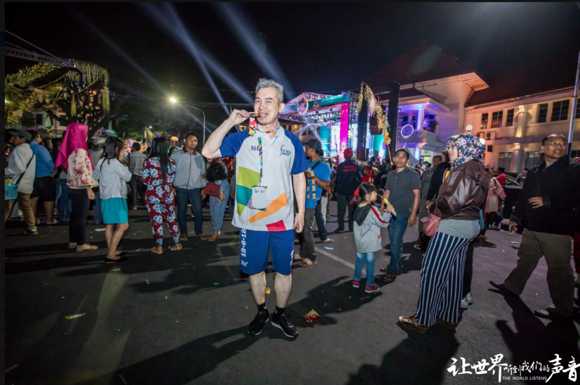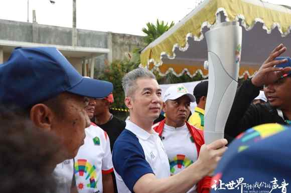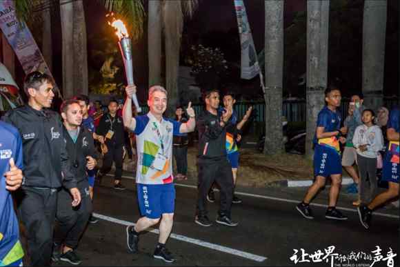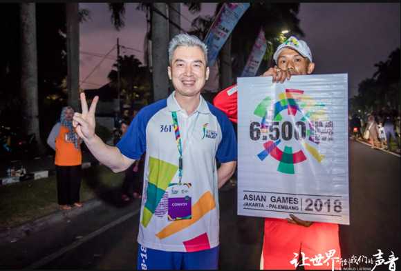 當(dāng)日銳豐科技總經(jīng)理凌子斌在瑪瑯城內(nèi) IDJEN BOULEVARD大街上進(jìn)行火炬的傳遞。印尼當(dāng)?shù)貢r間7點(diǎn)左右,在喧鬧的呼聲中亞運(yùn)會火炬終于來到了凌子斌總經(jīng)理的手中。
