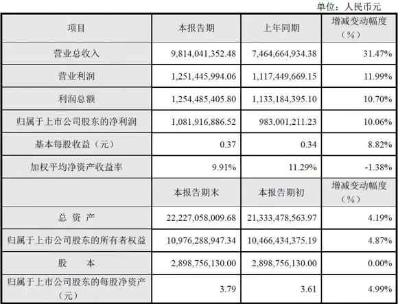 報告期內(nèi)公司實現(xiàn)營業(yè)總收入9,814,041,352.48元,較上年同期增長31.47%,實現(xiàn)營業(yè)利潤1,251,445,994.06元,較上年同期增長11.99%,實現(xiàn)利潤總額1,254,485,405.80元,較上年同期增長10.70%,實現(xiàn)歸屬上市公司股東凈利潤1,081,916,886.52元,較上年同期增長10.06%。主要是報告期內(nèi)公司基于技術(shù)創(chuàng)新、行業(yè)經(jīng)驗、客戶布局的領(lǐng)先優(yōu)勢,持續(xù)提升以視頻為核心的智慧物聯(lián)解決方案能力,把握市場和行業(yè)的發(fā)展趨勢,從而使公司業(yè)績持續(xù)增長。