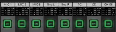 26個(gè)電動(dòng)推子(24路輸入+LR/單聲道)
