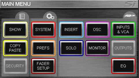 首先,我們巧妙的把“貼標(biāo)簽”轉(zhuǎn)化為數(shù)字標(biāo)簽!在Soundcraft Si Impact數(shù)字調(diào)音臺(tái)上,每個(gè)通道都有一個(gè)高亮度的彩色LCD顯示屏幕,這個(gè)LCD屏幕可以顯示對(duì)應(yīng)通道的名稱(可自定義編輯)并且有相應(yīng)的顏色加以識(shí)別。比如:有多支話筒輸入,可以在LCD屏幕上顯示mic1、mic2、mic3……;有立體聲音源輸入,可以顯示line L、line R;從電腦或者播放機(jī)輸入的信號(hào)可以顯示為PC、CD等。