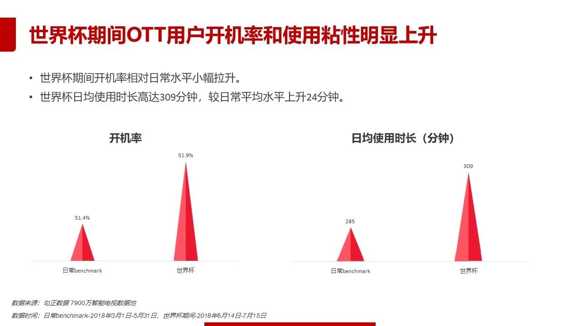 OTT作為新興媒體,2018世界杯可以說(shuō)是它的試金石,以上的數(shù)據(jù)表現(xiàn)也從側(cè)面反映出其未來(lái)的媒體價(jià)值。相信隨著智能電視保有量的提升、用戶規(guī)模的擴(kuò)大,接下來(lái)的四年,它的發(fā)展會(huì)迎來(lái)黃金期。