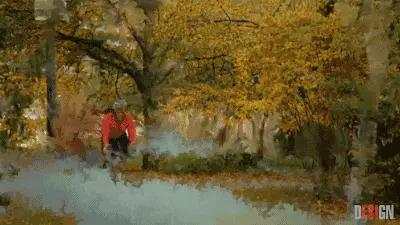 △隨著影像片段從公園場景過渡到河流場景,一條船從抽象的綠色植物中浮現(xiàn)。