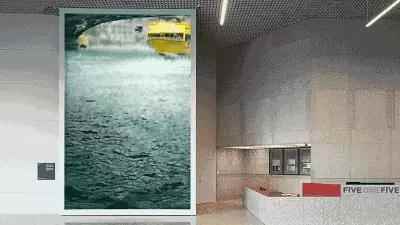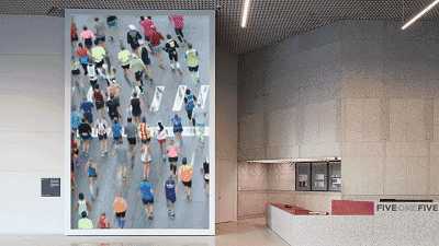 這件14×23英尺的巨大裝置,位于芝加哥北部國家街515號(515 North State Street)的大廳內(nèi),由創(chuàng)意公司ESI design和AV&C聯(lián)合創(chuàng)作完成。