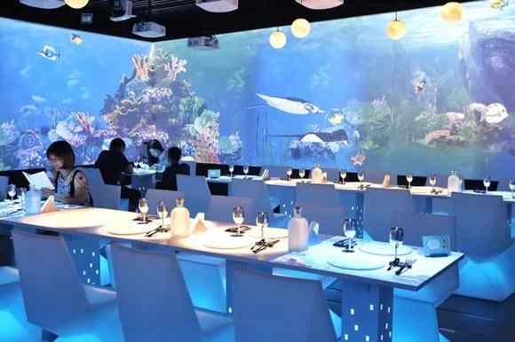 一入店,幽藍(lán)色的3D投影就像海水般將人環(huán)繞,