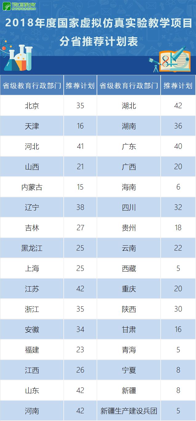 省級教育行政部門是2018年度國家虛擬仿真實(shí)驗(yàn)教學(xué)項(xiàng)目的推薦主體,負(fù)責(zé)所在省級區(qū)域范圍內(nèi)申報(bào)主體的推薦工作。