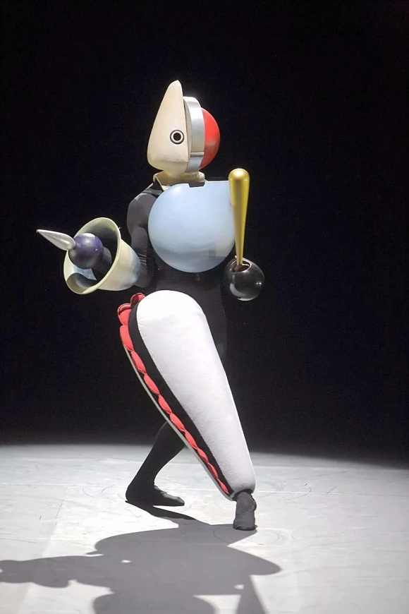《三人芭蕾》今天看來不是否定人性的舞蹈,意圖也不在通過身體苦行和覺悟來與觀眾產(chǎn)生共鳴,而是癡迷于人成為機械時代的造物主,以精密的、自動化的機械方式來展示人的創(chuàng)造力,營造“視覺奇象”,最終回到人。
