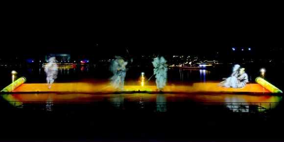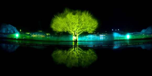 目前,白鷺湖水幕投影成功通過(guò)了吉尼斯的官方認(rèn)證,獲得全球第一大水幕投影的殊榮。據(jù)漢合天辰(廈門)科技有限公司總經(jīng)理、項(xiàng)目總導(dǎo)演羅力華介紹,「該項(xiàng)目采用了3臺(tái)NEC 40000流明4K雙色激光工程機(jī),最終實(shí)現(xiàn)了長(zhǎng)150米、高25米的水幕整體效果,總投影面積達(dá)1582平方米!