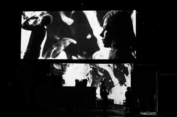 《火爆浪子》的幾個(gè)拍攝場地雖然都帶觀眾,但最佳觀賞點(diǎn)卻是屏幕。當(dāng)然,舞臺和影像融合的落腳點(diǎn)也可以在舞臺,2017年烏鎮(zhèn)戲劇節(jié)的邀演劇目德國邵賓納劇團(tuán)的《影子》就是一個(gè)范例。該劇在舞臺上呈現(xiàn)了一部藝術(shù)影片的拍攝全過程,并即時(shí)投影在舞臺頂部的大銀幕上。攝影機(jī)前的演員和攝影機(jī)后的操作人員同時(shí)出現(xiàn)在舞臺上,演員的表演經(jīng)常被各種道具和布景擋住,因此,雖然觀眾坐在傳統(tǒng)的劇場里,但最佳視點(diǎn)依然是大銀幕,只不過這塊銀幕在舞臺上方,而非直播到其他空間。相比之下,舞臺演出更像是用于揭秘的幕后紀(jì)錄片。兩者相映成趣。