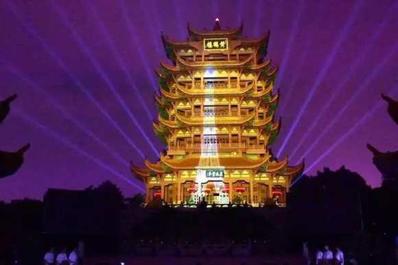 黃鶴樓也可以美得高貴典雅。6分半鐘的炫酷燈光秀讓黃鶴樓換了一身形象驚艷亮相!