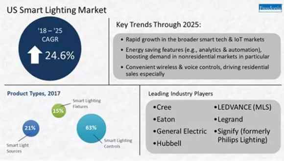 Freedonia Group這張圖顯示了美國智能照明市場的增長預(yù)測以及預(yù)計(jì)將推動(dòng)其發(fā)展的主要趨勢(shì)。