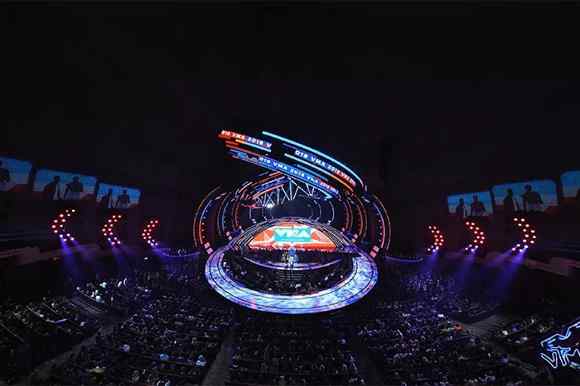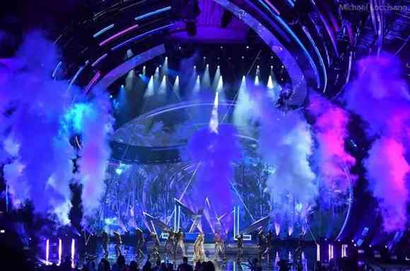 今年VMA布景設(shè)計(jì)靈感來源于音樂廳內(nèi)部無線電城的標(biāo)志性圓形建筑,設(shè)計(jì)師將場(chǎng)地的圓形舞臺(tái)融入他的設(shè)計(jì)元素中,根據(jù)曲線和圓形運(yùn)動(dòng)創(chuàng)造了這個(gè)別具一格的舞臺(tái)。