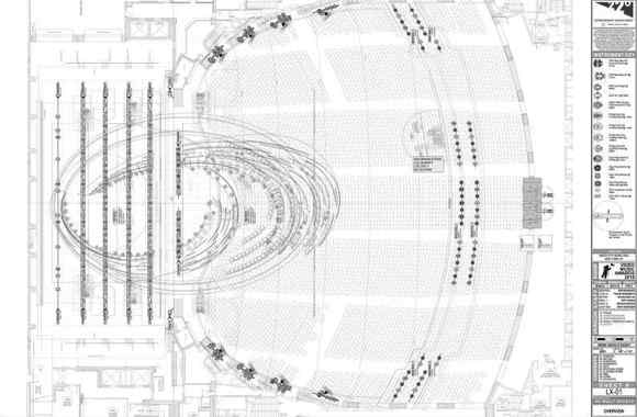 設(shè)計(jì)師通過懸掛并漂浮在舞臺(tái)外面彎曲的LED面板圓形雕塑,打破舞臺(tái)常規(guī),對(duì)舞臺(tái)進(jìn)行現(xiàn)代的詮釋和演繹。