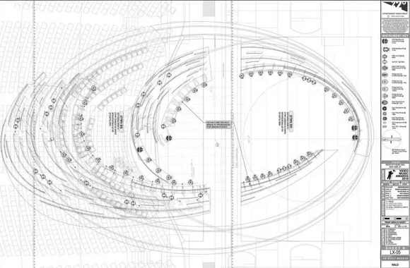 燈光由內(nèi)向外遍布整個(gè)舞臺(tái),在舞臺(tái)兩側(cè)各安裝三個(gè)共六個(gè)成'肋骨'形狀燈光設(shè)備,這是一個(gè)關(guān)鍵且非常有用的照明位置,給整個(gè)舞臺(tái)補(bǔ)充了兩側(cè)的光,使的燈光效果更加立體可感。