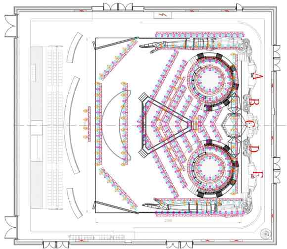 整個舞臺融合搖滾樂的特色和潮流趨勢,運(yùn)用金屬材質(zhì)和LED勾線,在視覺上增強(qiáng)了整個空間的層次感和立體感,無處不展現(xiàn)出搖滾的硬核魅力。