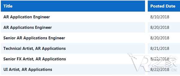 在8月11日,“AR Application Engineer(AR應(yīng)用程序工程師)”的職位空缺出現(xiàn)在蘋果的人才招募頁面上。數(shù)周后,映維網(wǎng)又發(fā)現(xiàn)了五份包含“AR Application(AR應(yīng)用程序)”字眼的招聘啟事。這表明蘋果正在為未來的AR產(chǎn)品招兵買馬。截至今天,映維網(wǎng)發(fā)現(xiàn)了六個包含“AR Application(AR應(yīng)用程序)”字眼的職位: